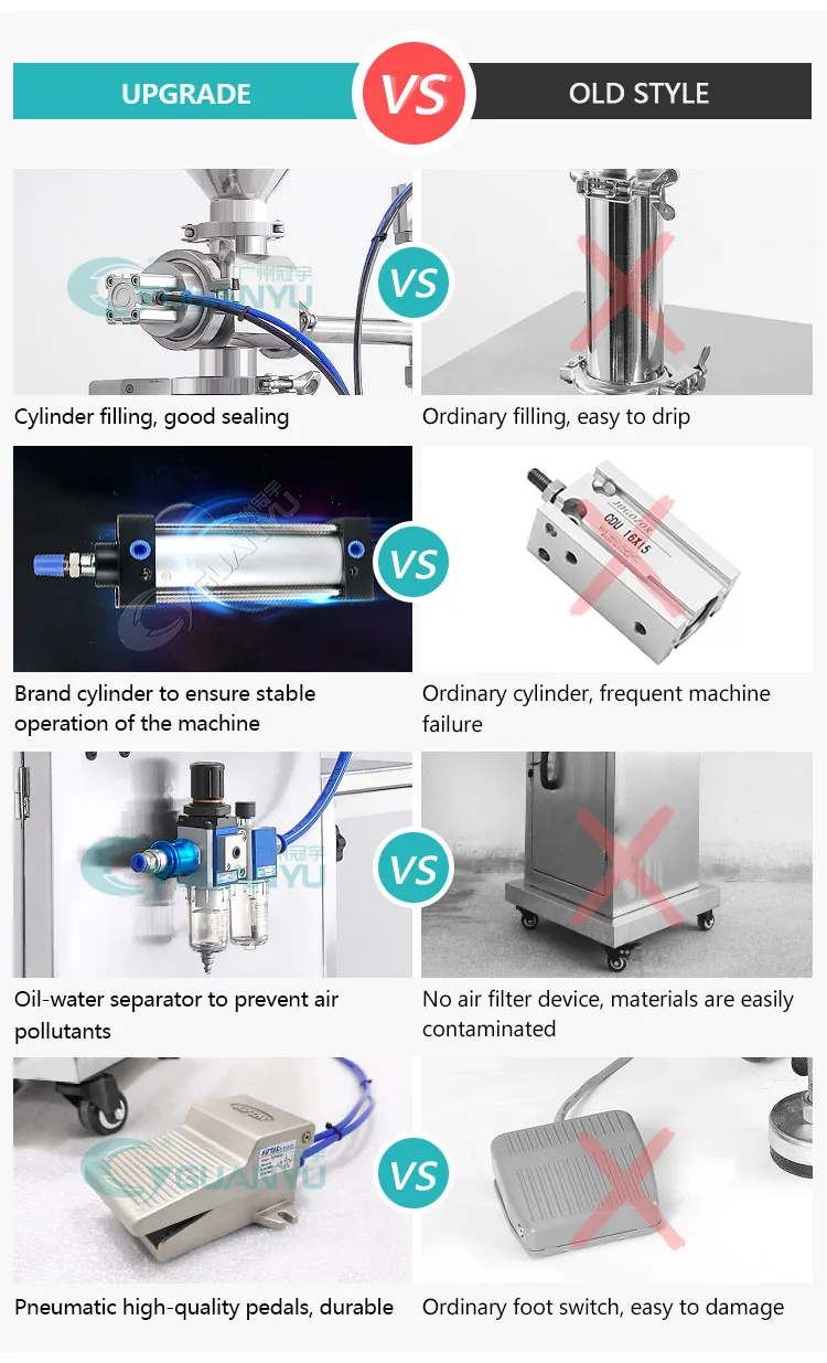 Its structure is simpler and more reasonable, with higher accuracy and easier operation. It is suitable for medicine, dailychemical, food, pesticide and special industries. It is an ideal equipment for filling high-viscosity fluids and pastes. Thisseries of filling machines are divided into single head and double head models with electrical control and full pneumatic control.Filling range 3-30ml 10-100ml 30-300ml 50-500ml 100-1000ml 500-3000ml 1000-5000ml