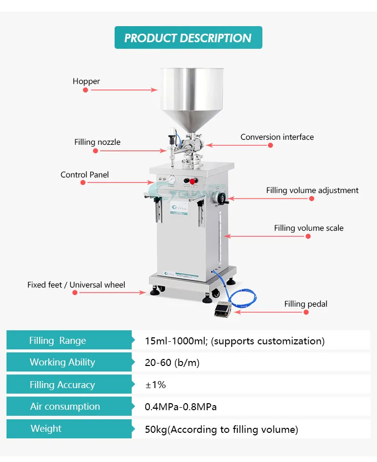 High Viscosity Liquid Filling Machine Yogurt Honey Semi-Automatic Liquid Filling Machine Single Ointment Bottle Filling Machine