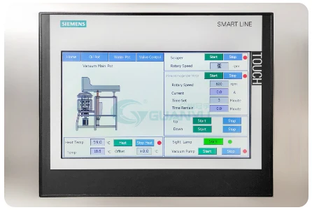 กล่องควบคุมประกอบด้วยการตั้งค่าต่างๆ เช่น การตัดเฉือนที่เป็นเนื้อเดียวกัน, การผสมการควบคุมความเร็วในการแปลงความถี่, เวลาทำงาน, การสกัดสูญญากาศ, ความร้อนระหว่างชั้น, ฯลฯ.